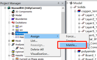 a.在管理栏,Parameters右击选择Assign >>Matrix。