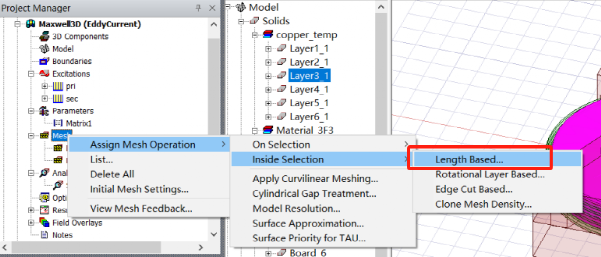 b.在管理栏,Mesh右击选择Assign Mesh Operation>>Inside Selection。