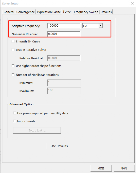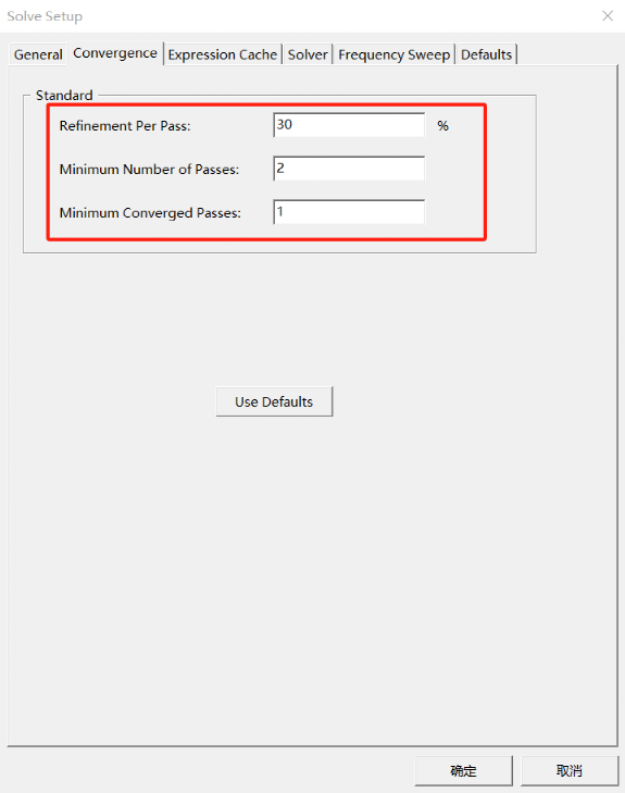 添加求解设置项,主要设置频率、求解次数、收敛标准等。
