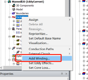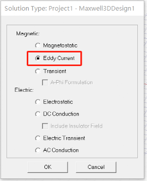 先根据计算的特点选择求解器类型,开关变压器一般选择Eddy Current涡流求解器 。
