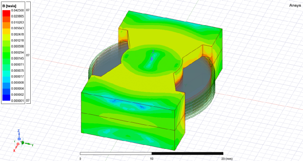 按前文说明的,需要把变压器铁芯、绕组等建立出来。注意:如果需要查看变压器周围场图结果,则需要把周围建立出来,等效为空气盒。