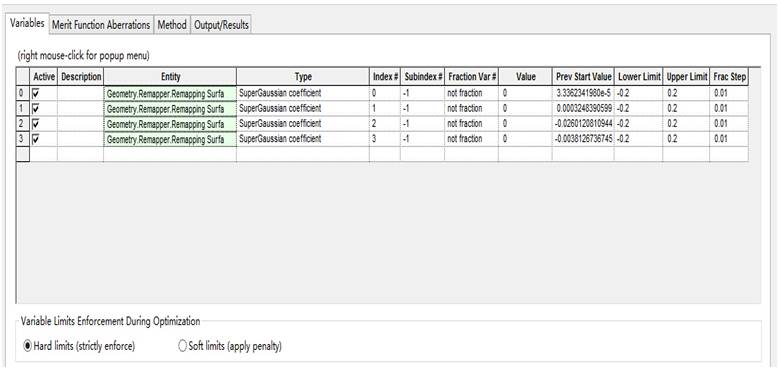 优化变量:改变这些超高斯面的参数,用FRED优化自由曲面变的非常简单。